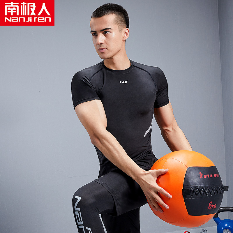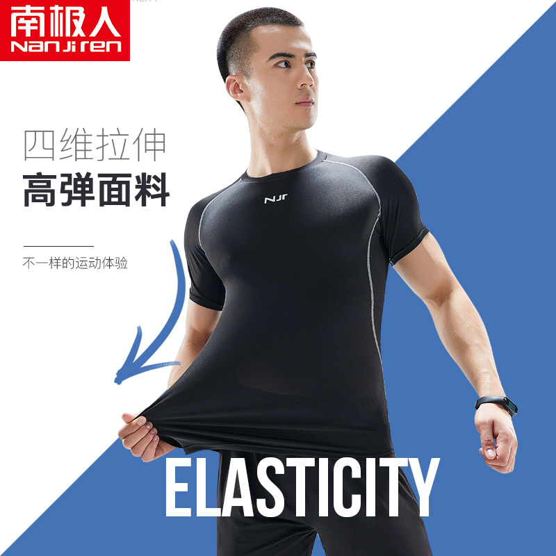 South Pole sports fitness clothes men's summer spring autumn short sleeves T-shirt running speed dry tight clothes jacket training clothes