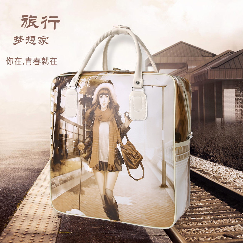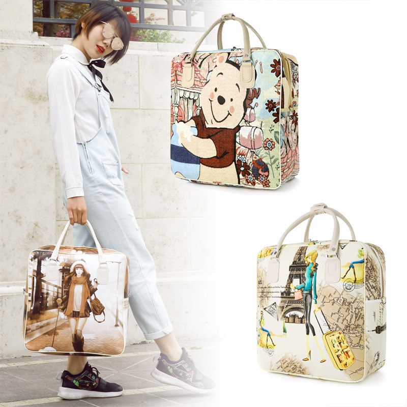 2020 new travel bag female hand luggage bag male cartoon waterproof PU leather short-distance business trip to be produced fitness bag tide
