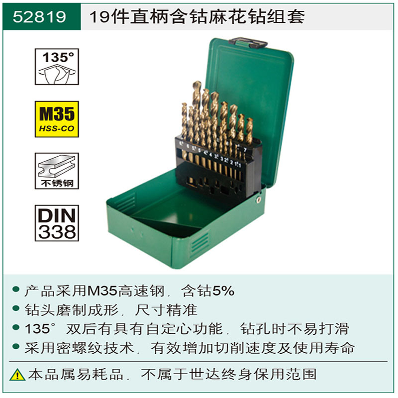 Skadden Tools Twist Drill Set contains cobalt 6 pieces 10 pieces 19 pieces drill bit set 52806 52810 52819