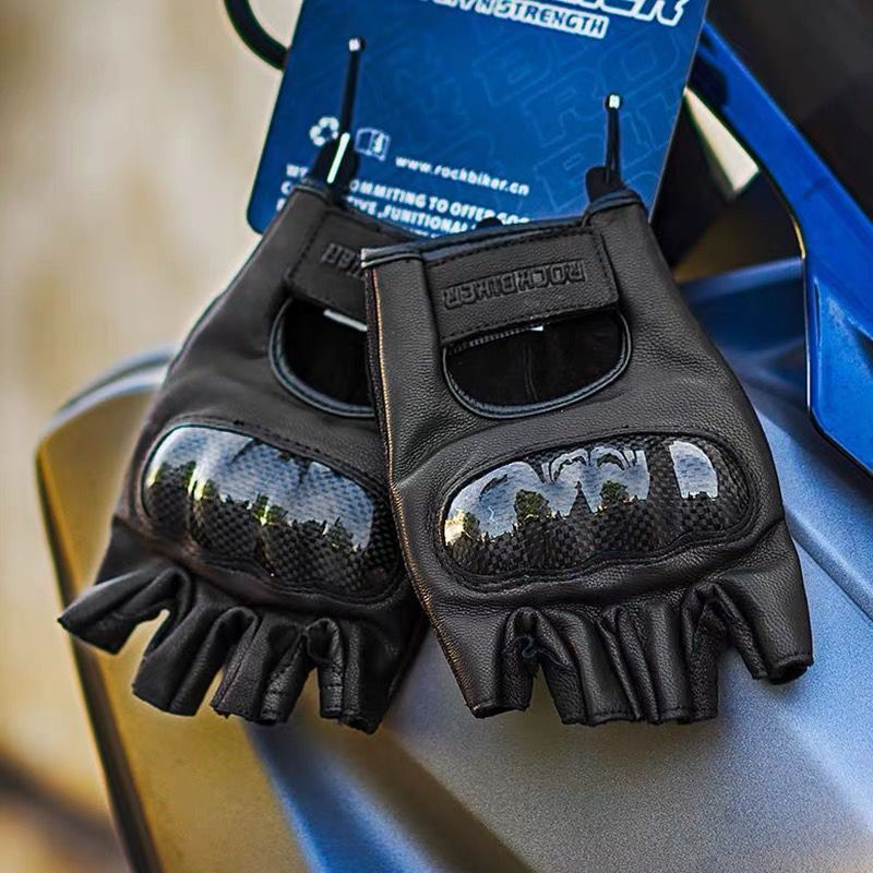 ROCK BIKER retro genuine leather motorcycle riding half-finger glove male carbon fiber locomotive racing spring summer 028