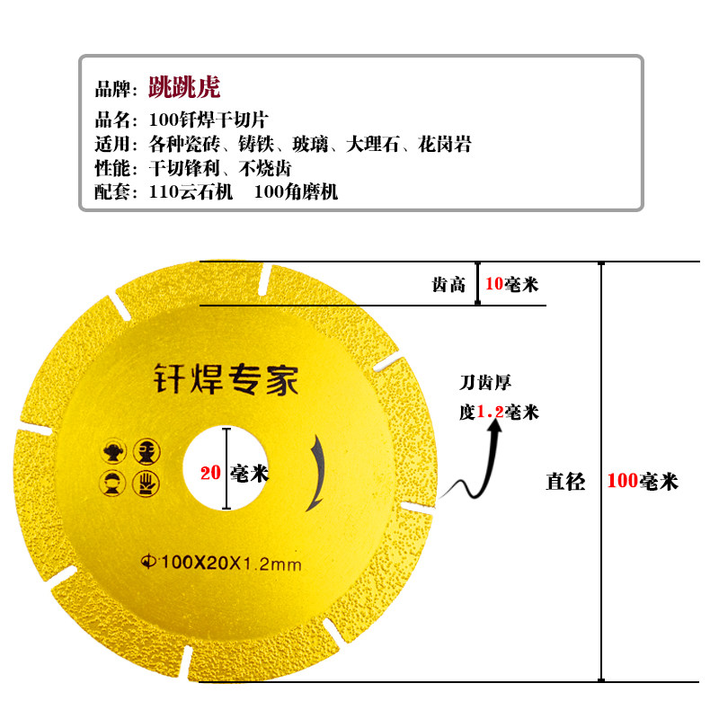 Tigger brand 100 brazed dry sheet glass marble diamond cutting disc marble slice 100 angle grinder