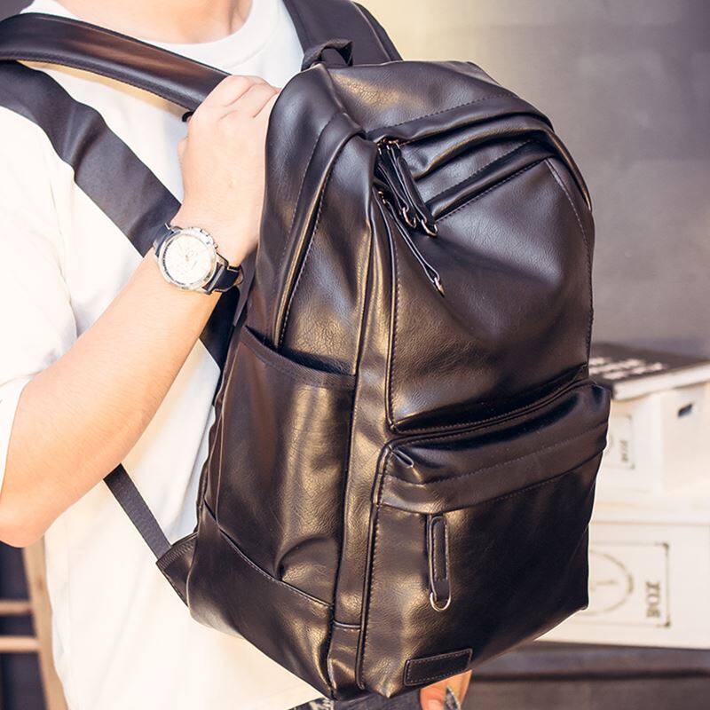 Young men's backpack Europe and the United States men's bag Leather shoulder bag Men's Korean version of the school bag British fashion trend wild