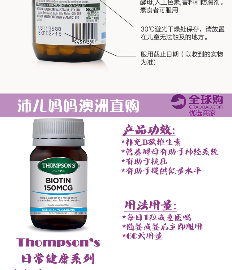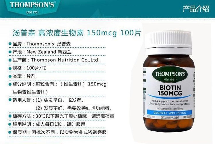 Australia Direct Mail New Zealand Thompson's Thompson Biotin 100 Grains Hair Prevents Hair Loss