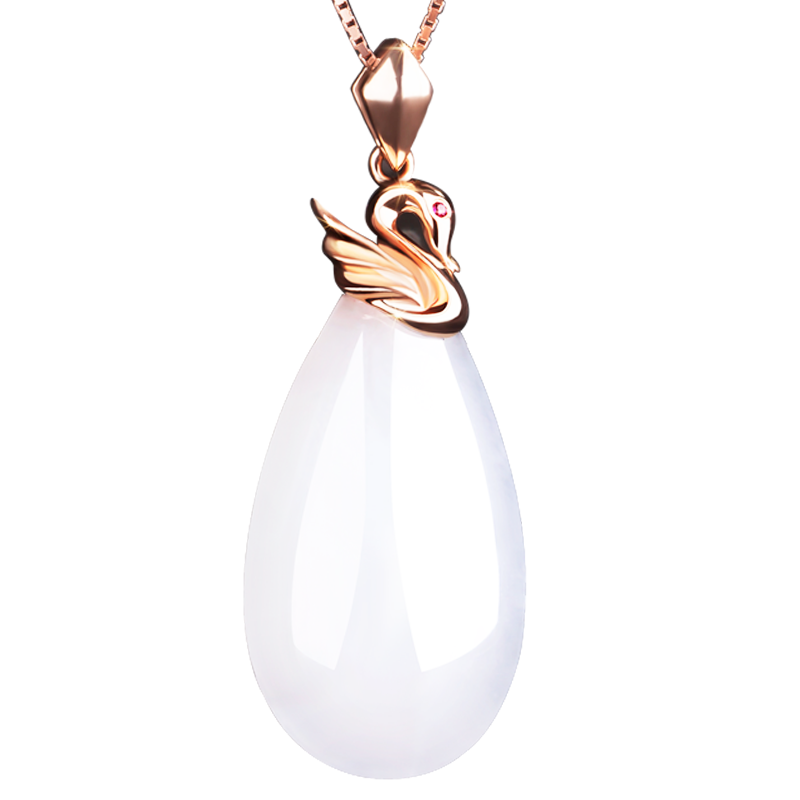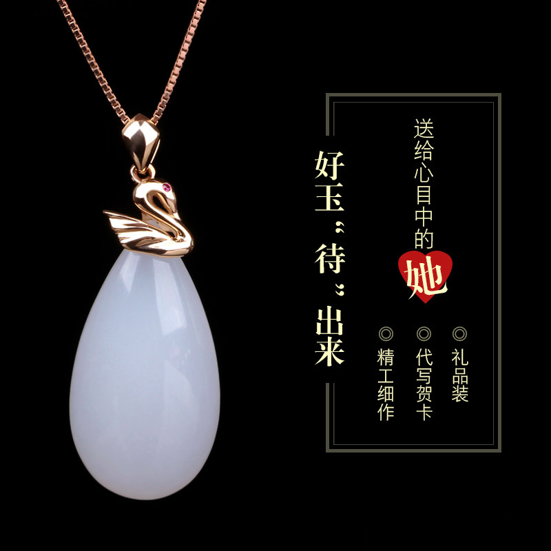 Xinjiang Hetian jade pendant women's natural jade necklace jade pendant mutton white jade water drop 18K gold inlaid jade pendant