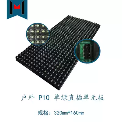 LED monochrome full waterproof outdoor P10 single Green straight plug unit Board LED display module door head rolling