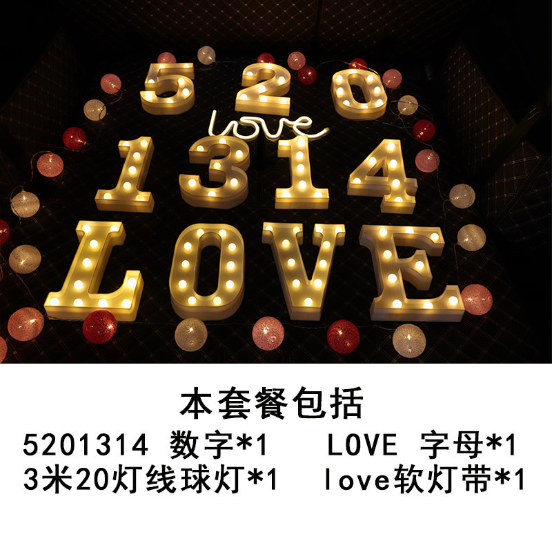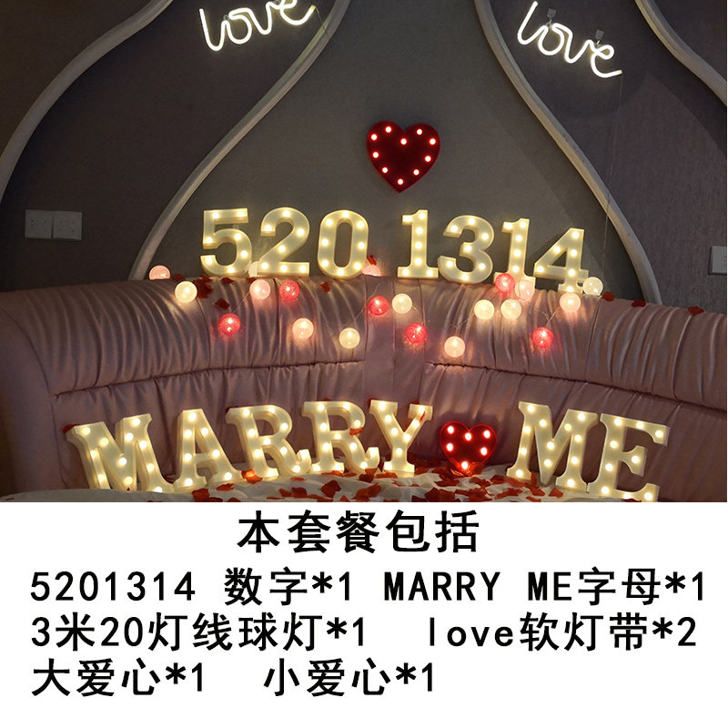 Trunk proposal suit Indoor proposal suit 520 suit Lifetime suit Happy birthday package Letters A-Z numbers 0-9 Take a message love soft light bar warm color lo