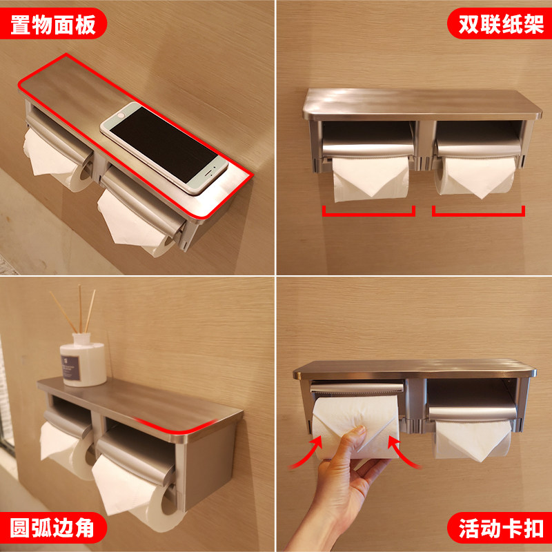 Stainless steel tissue holder Perforated wall-mounted double waterproof tissue box storage rack Roll toilet paper toilet paper holder Roll toilet paper tube