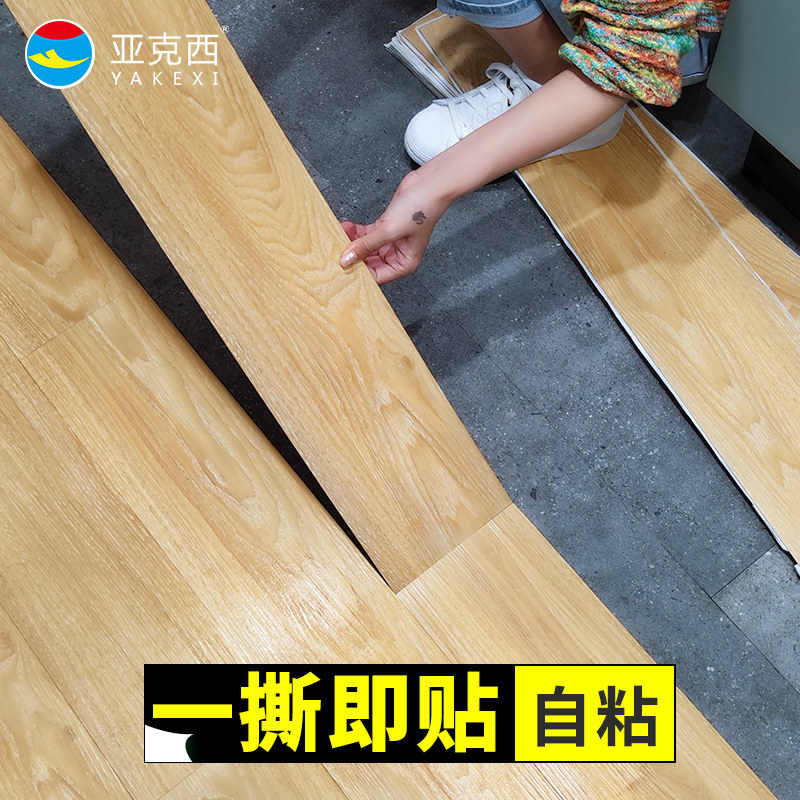 Self-adhesive floor leather PVC floor sticker thickened abrasion resistant waterproof home wood grain rubber flooring ins mesh red floor sticker