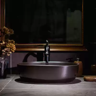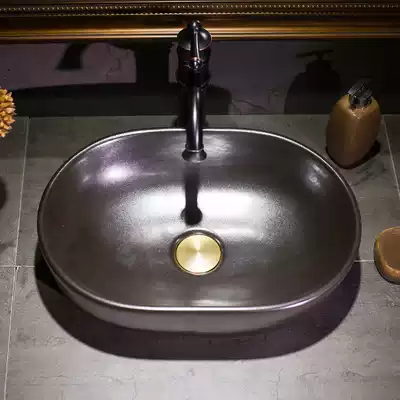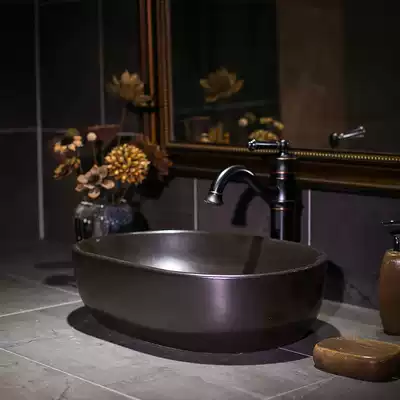 Black metal glaze art basin upper basin European ceramic washbasin flower petal shaped table basin basin wash basin