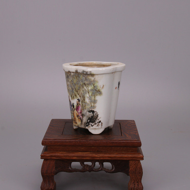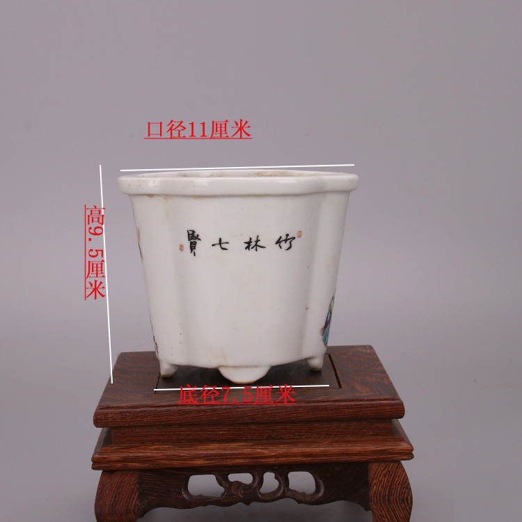 Qingkura Republic of China antique porcelain flower pots Jingdezhen small pendulum pieces pink bamboo forest Seven Yin Tugu playing old objects collection