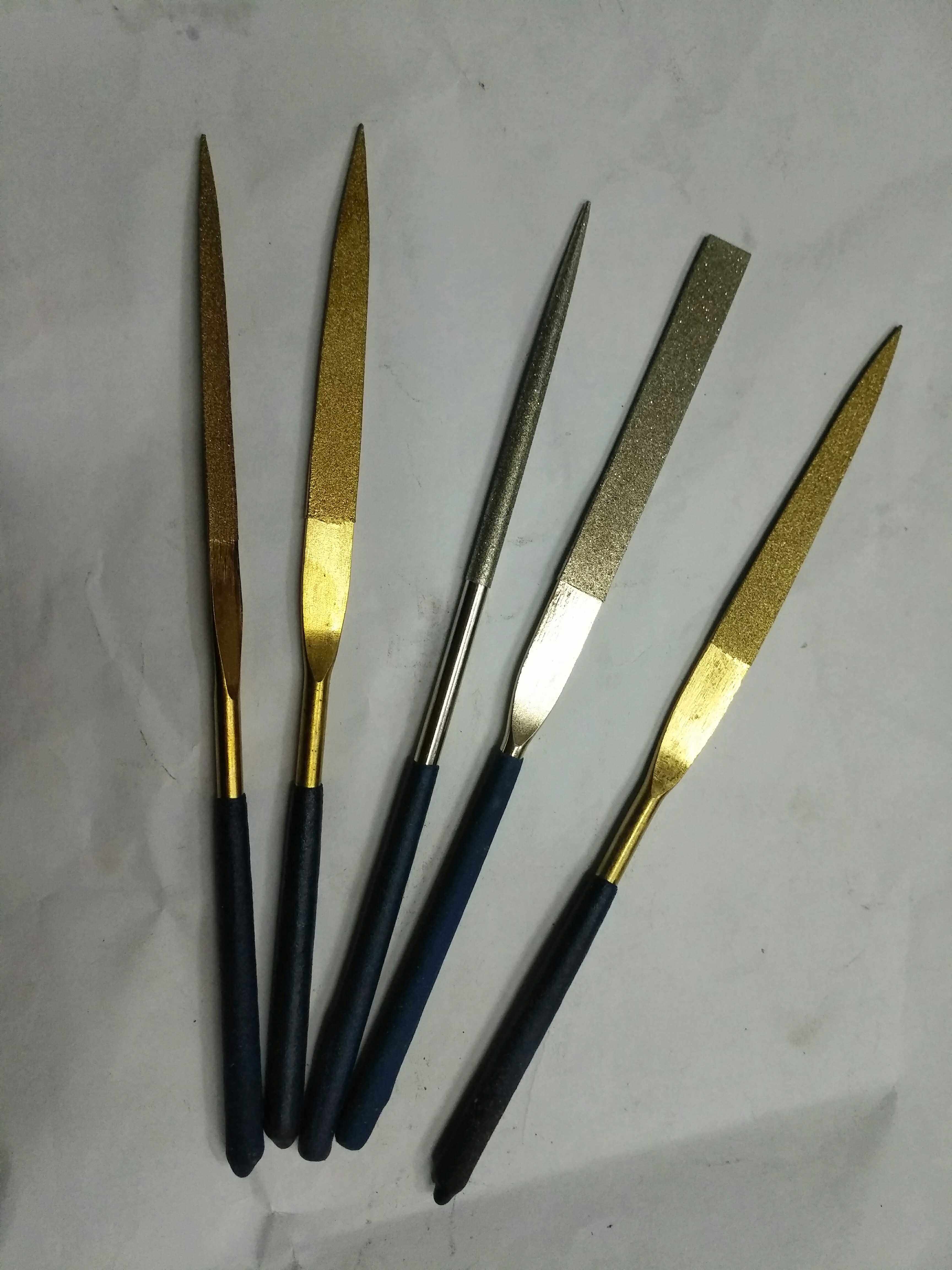 Super boutique titanium-plated gold steel stone Jacken file knife Round Square flat semi-circle triangle 10 pieces set steel contusion knife