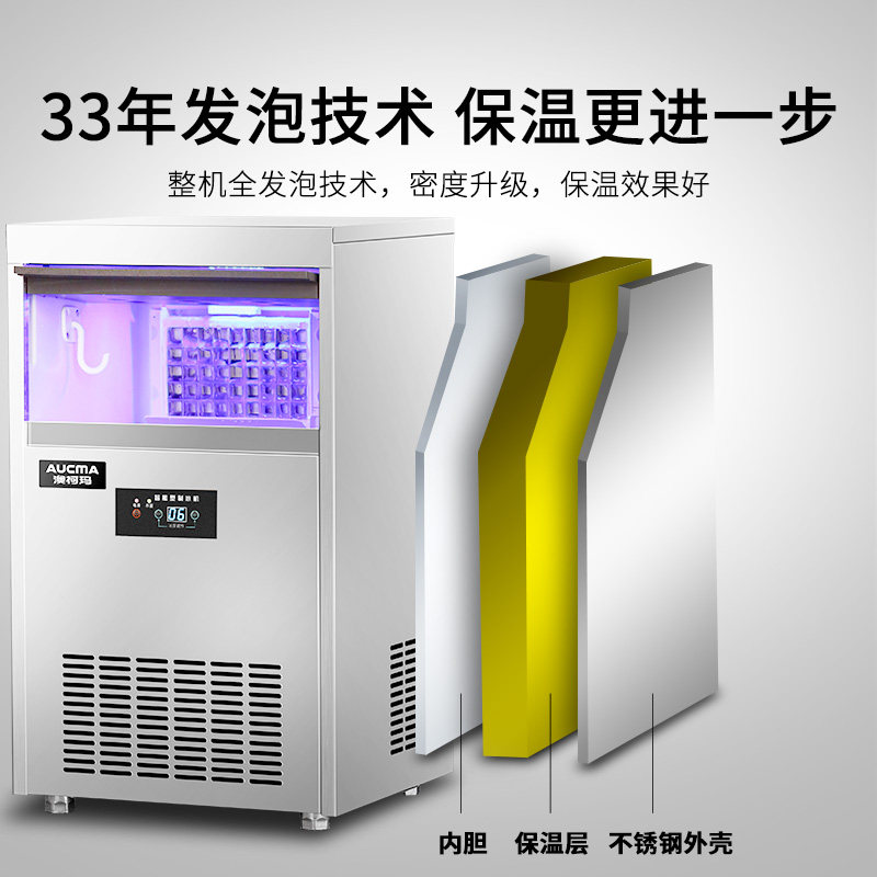 Aucma ice making machine 75~110kg kg Commercial milk tea shop large production machine Square ice making machine Fully automatic