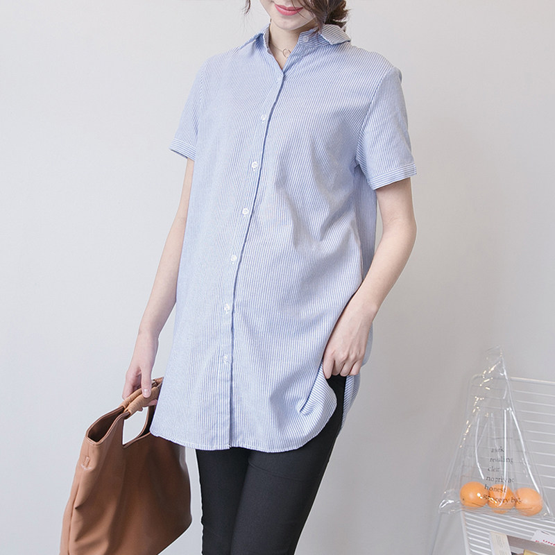 2022 Summer clothing New Pregnancy Woman Dress Short Sleeve Turnover Striped Pregnant Woman Shirt Korean Version Pregnant Women's Shirt With Long Version Blouse