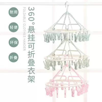 Multifunctional folding clothes rack Baby children drying socks underwear household large windproof slip plastic clip disassembly