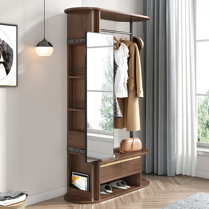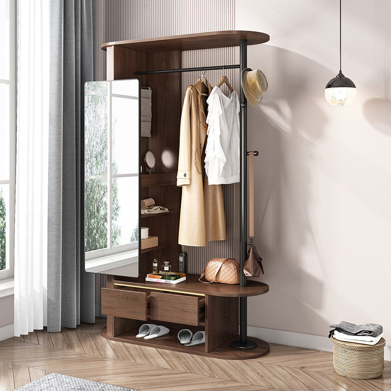 Bedroom hanger floor-to-ceiling night to put clothes coat rack living room multi-function full-body mirror shoe rack integrated
