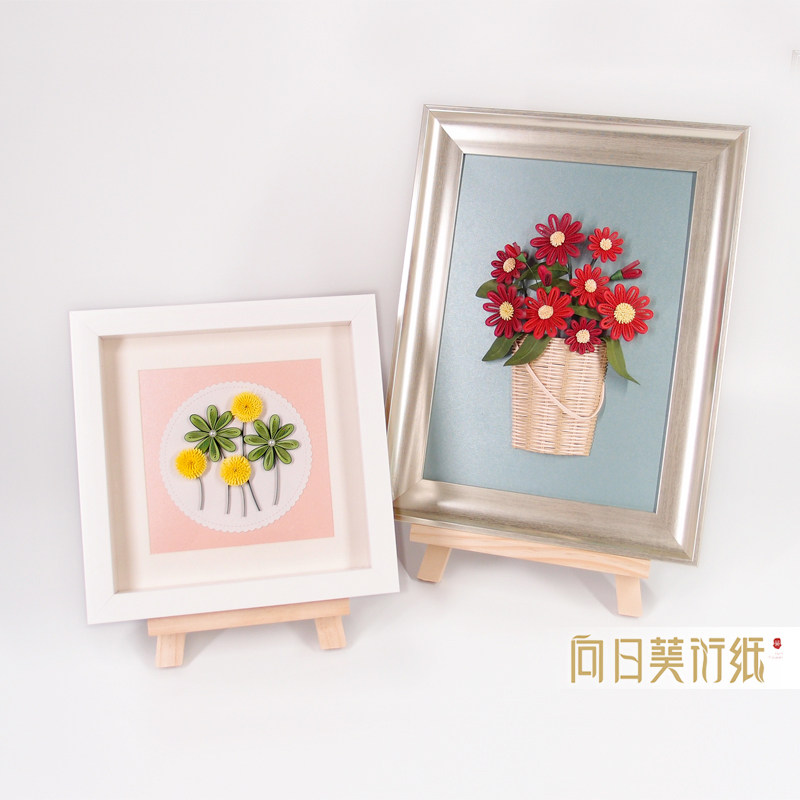 Sunflower Roll Paper Solid Wood Round Head Reinforcement Bracket Work Photo Frame Display Trapezoidal Small Easel Full