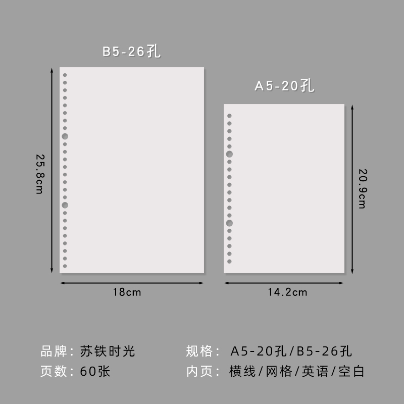 Cycad time a5 b5 loose-leaf replacement core Standard 20-hole 26-hole loose-leaf core notebook replacement core inner page