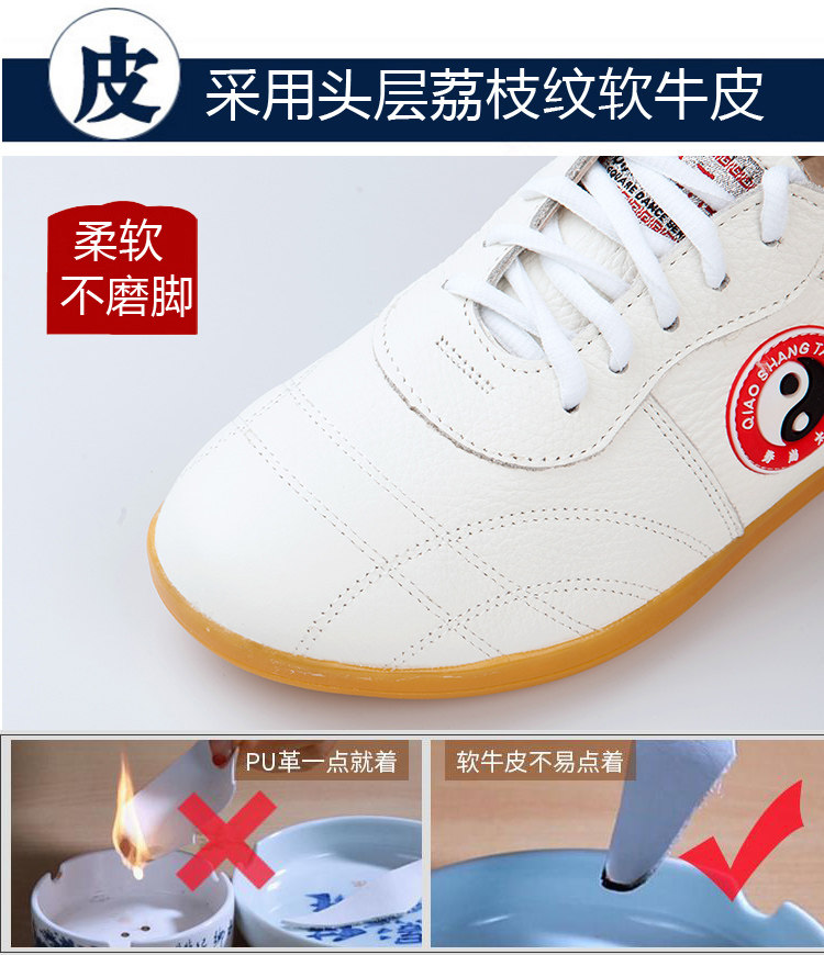 Xiaoheshan Taiji shoes women's leather soft beef tendon bottom martial arts shoes men's spring and summer Taijiquan training shoes sports shoes rd