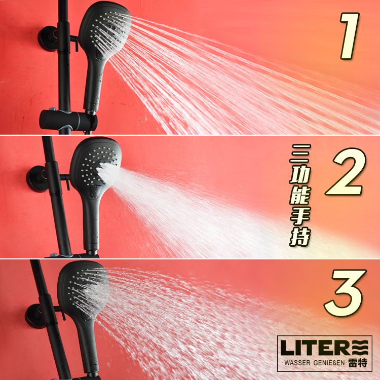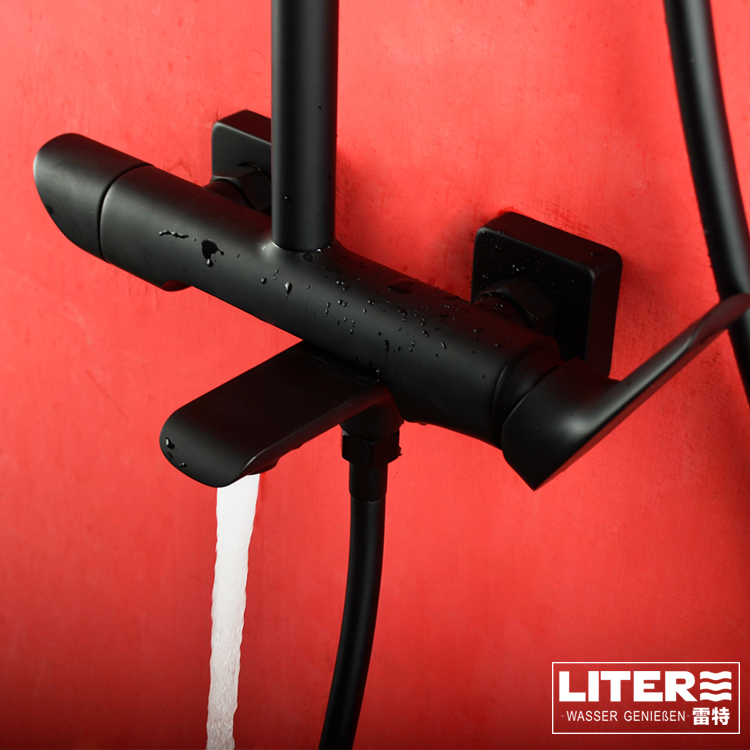 Rete Nordic Full Copper Bathroom Shower Shower Shower Shower Kit Lift Air Injection Fly Rain Matt Black Shower