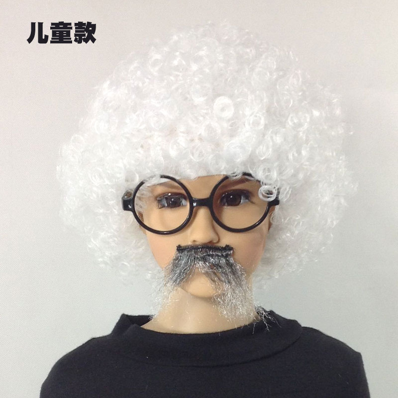 Einstein wig explosion head lifelike fluffy white children adult stage performance scientist props