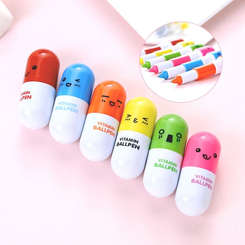 Cute Capsule Pill Pen Flex Ballpoint Pen minimalist Personality Pen Elementary School Stationery Items Children's Prizes-Taobao