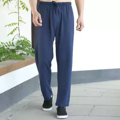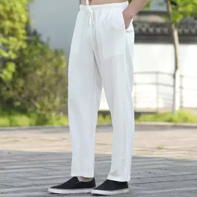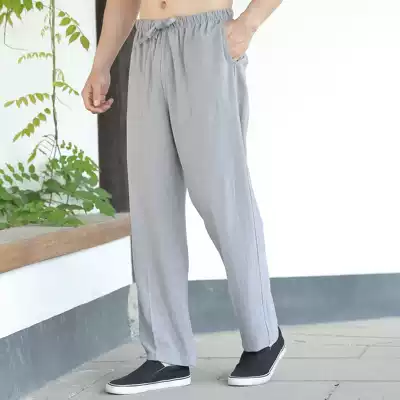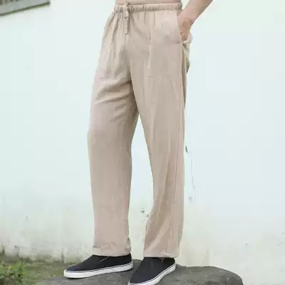 Flax pants men's summer thin Chinese style men's casual pants loose straight hemp material men's pants elastic waist long pants