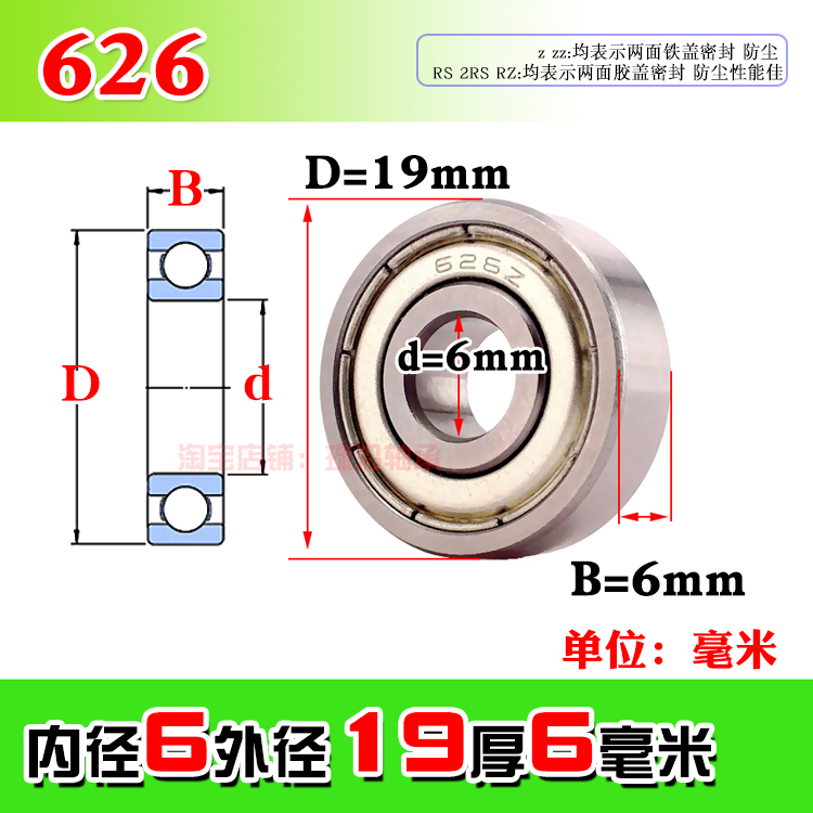 626ZZ626RS precision grade 626zz precision grade 626RS model inner diameter*outer diameter*thickness unit mm other specifications please consult customer service