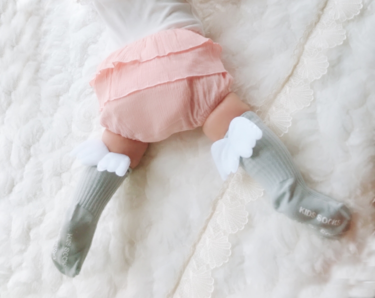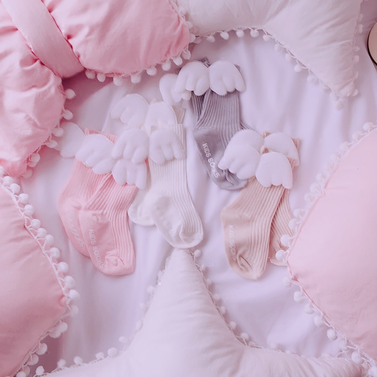 Korean version of baby socks solid color wild cute angel wings Princess socks Children's cotton loose non-slip floor socks