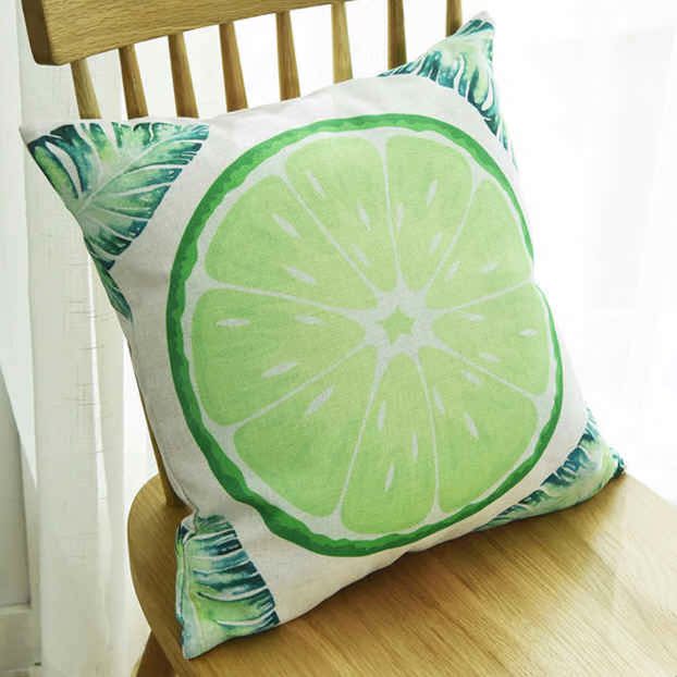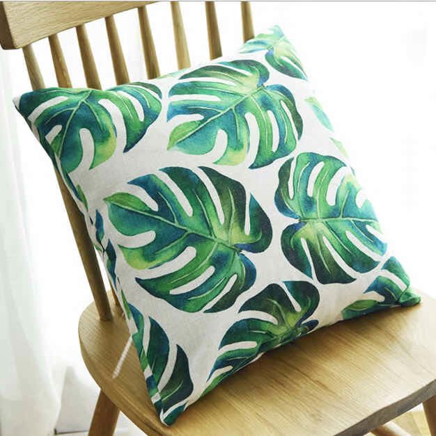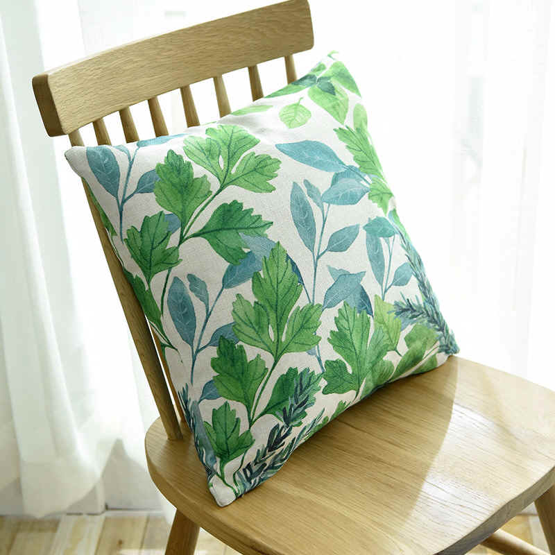 Fresh green leaves thick cotton linen cushion pillow cover Nordic garden sofa car backrest office nap pillow