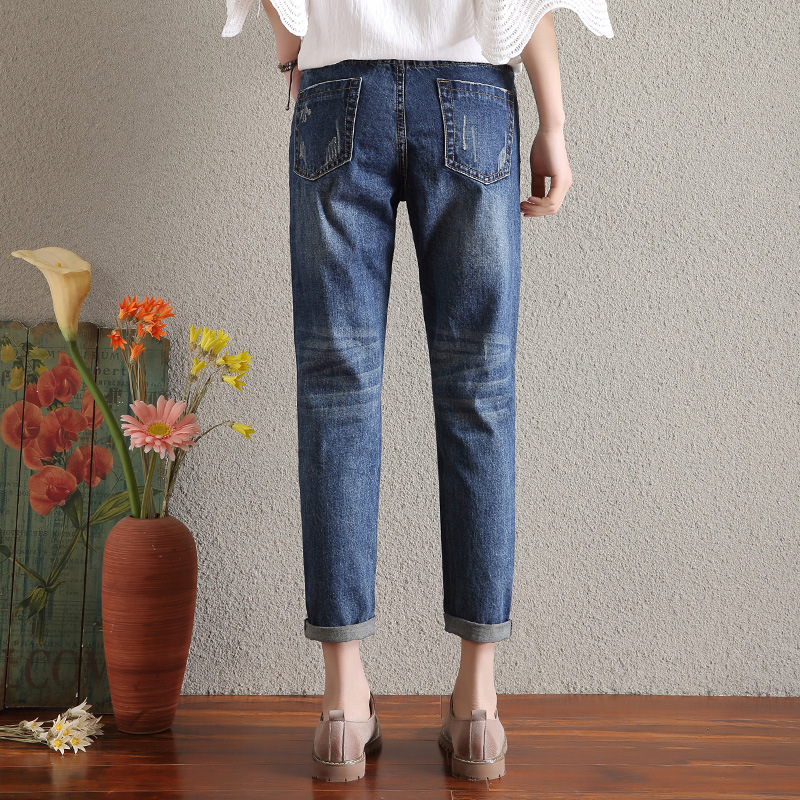 Loose wide-leg bf ripped jeans women's summer 155 nine-point pants Korean version of the high-waisted student all-match casual straight-leg pants