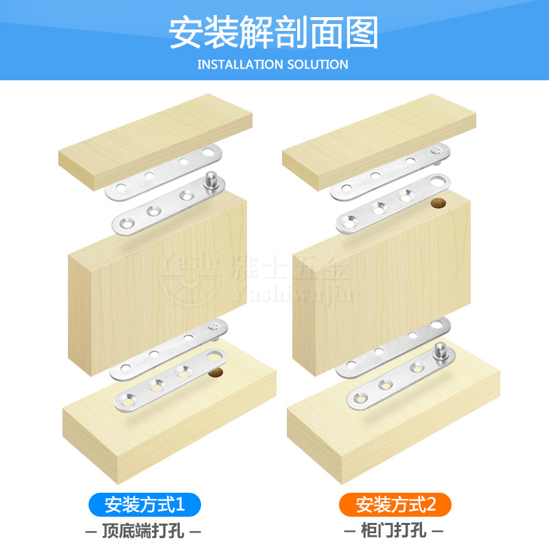 Stainless steel 360 degree swivel wooden door upper and lower hinges, positioning door shaft, tile-axis, rotating shaft, hidden hinge