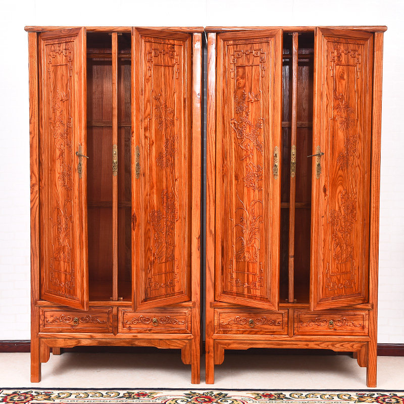 Chinese red flower pear chicken wings sour color Ming classical home elm solid wood melan bamboo chamomile landscape great clothes cabinet top box cabinet