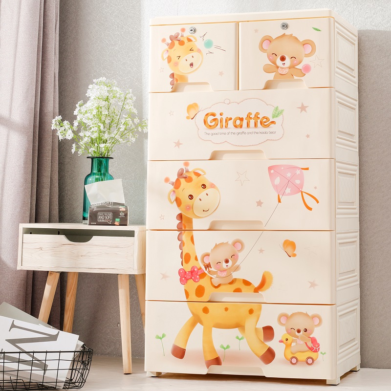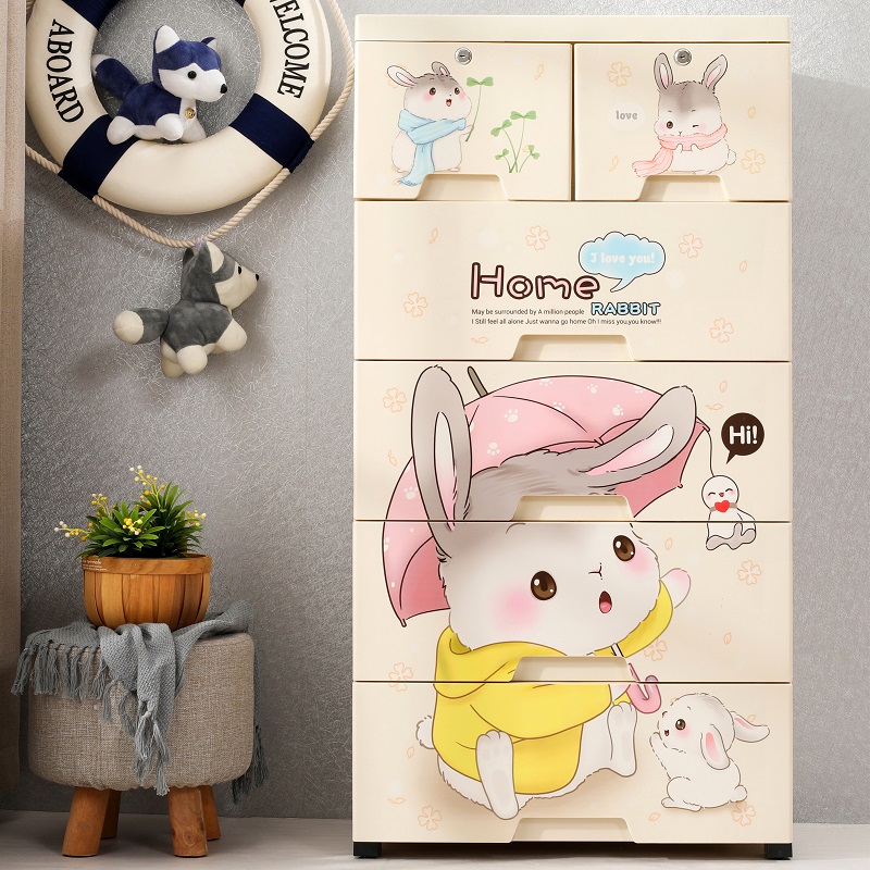 Thickened plastic drawer-type storage cabinet baby wardrobe baby children's finishing box toy multi-layer five-bucket storage cabinet