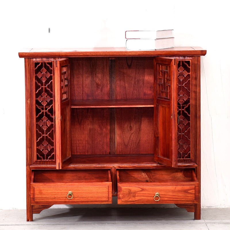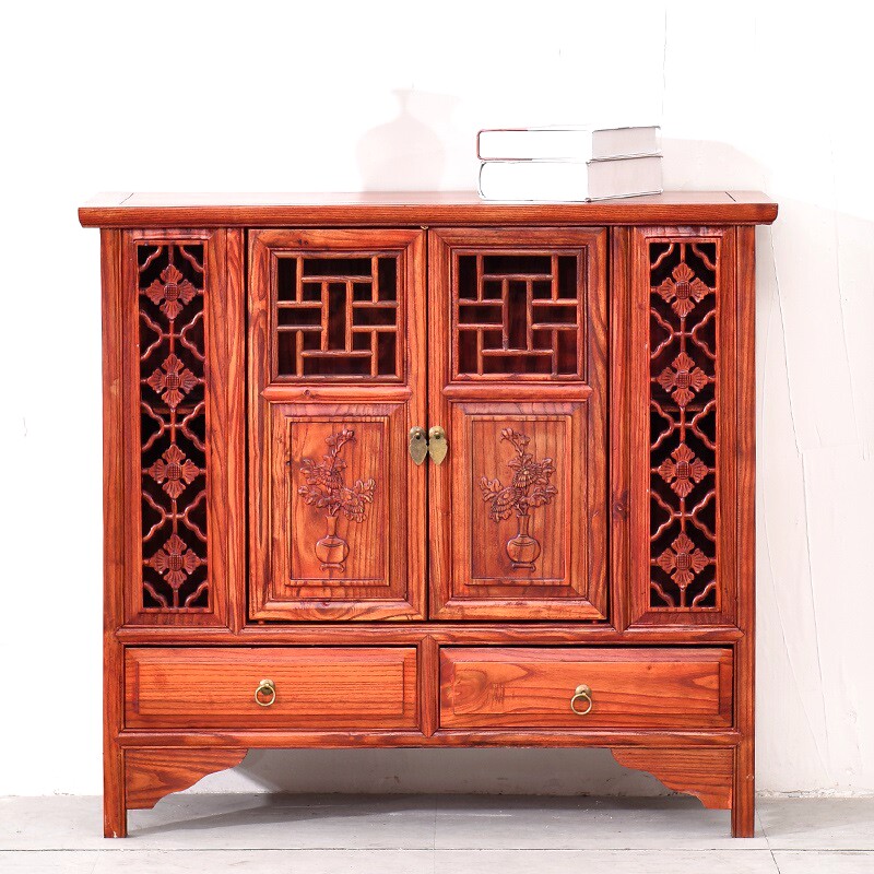 Red Flower Pear Antiquity Solid Wood Winery Restaurant Restaurant Elm Two Double Double-Double Chinese Flower Cabinet Classical Shoe Cabinet