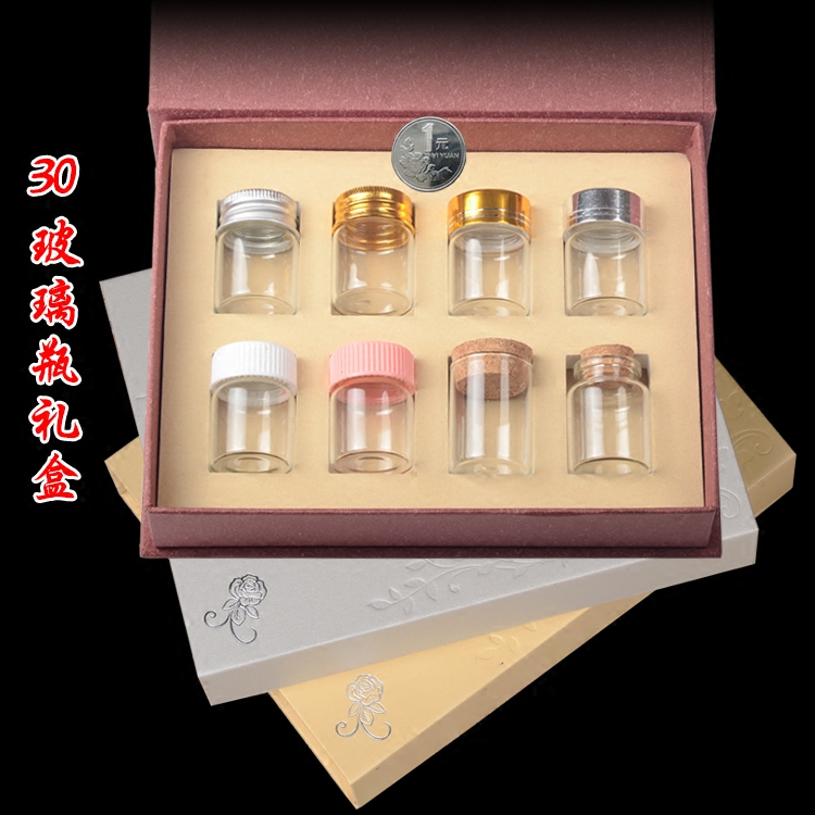 Gift box Glass bottle Cork test tube Glass bottle Gift box set Wishing bottle Flower tea aluminum cap glass bottle combination