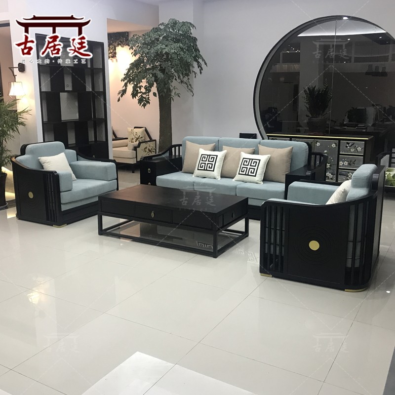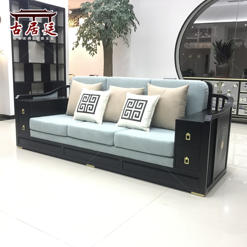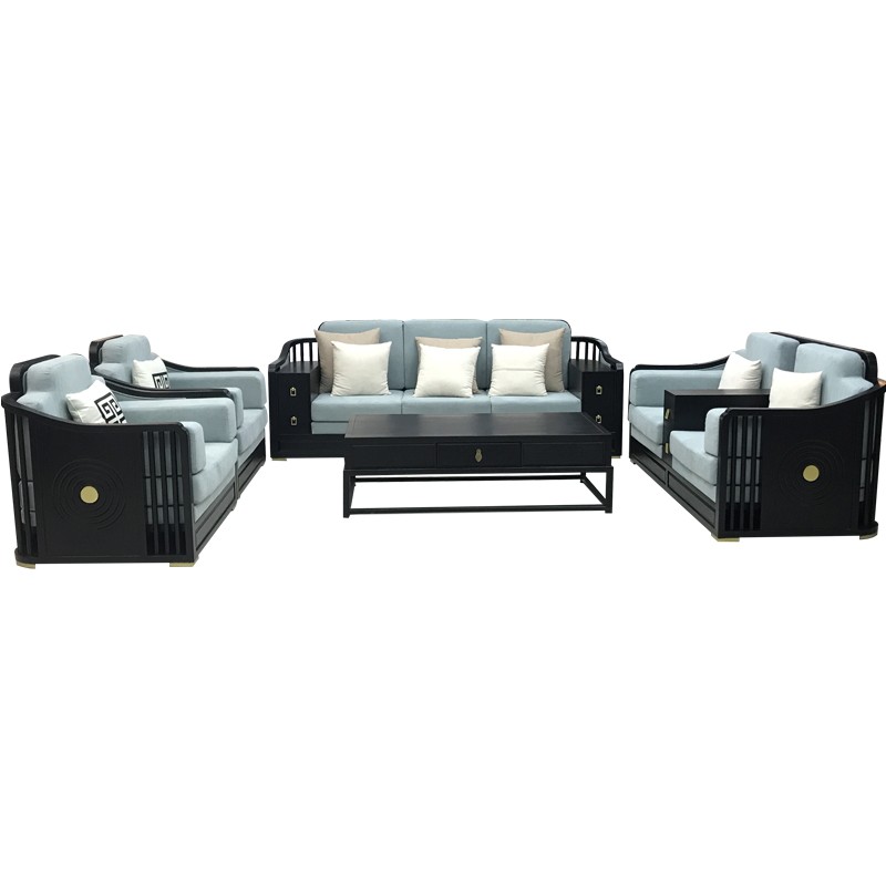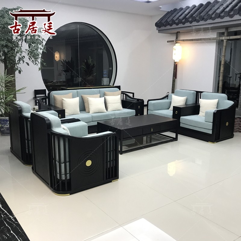 New Chinese sofa combination modern Zen Chinese style solid wood living room three-person villa hotel B & B furniture customization