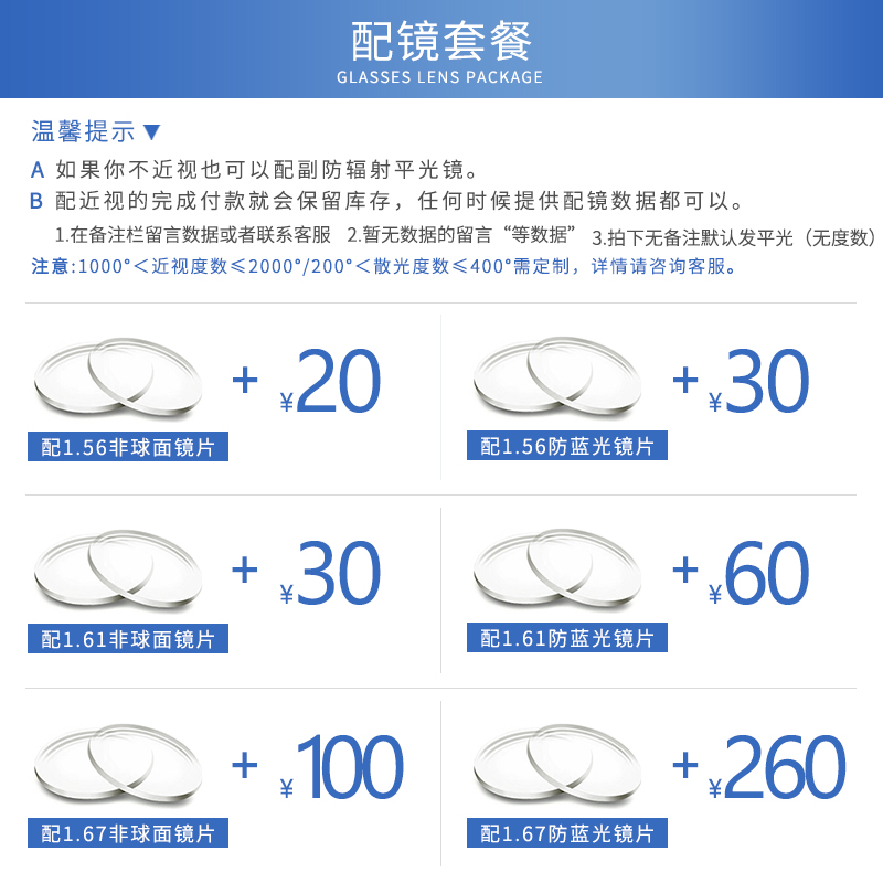Frame with 1 67 anti-blue lens (color degree note)