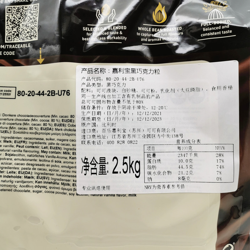 Belgium imported Callebaut dark chocolate beans 80% 2 5kg pure cocoa 500g original West Point baking ingredients