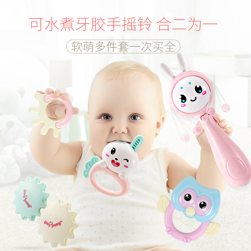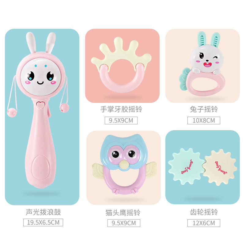 Sun Tu Award 3 yuan tooth music rattle (Bell blue) tooth gum music rattle (Cherry pollen) tooth gum music rattle (mint green) tooth gum music rattle 4 pieces can be boiled Bell
