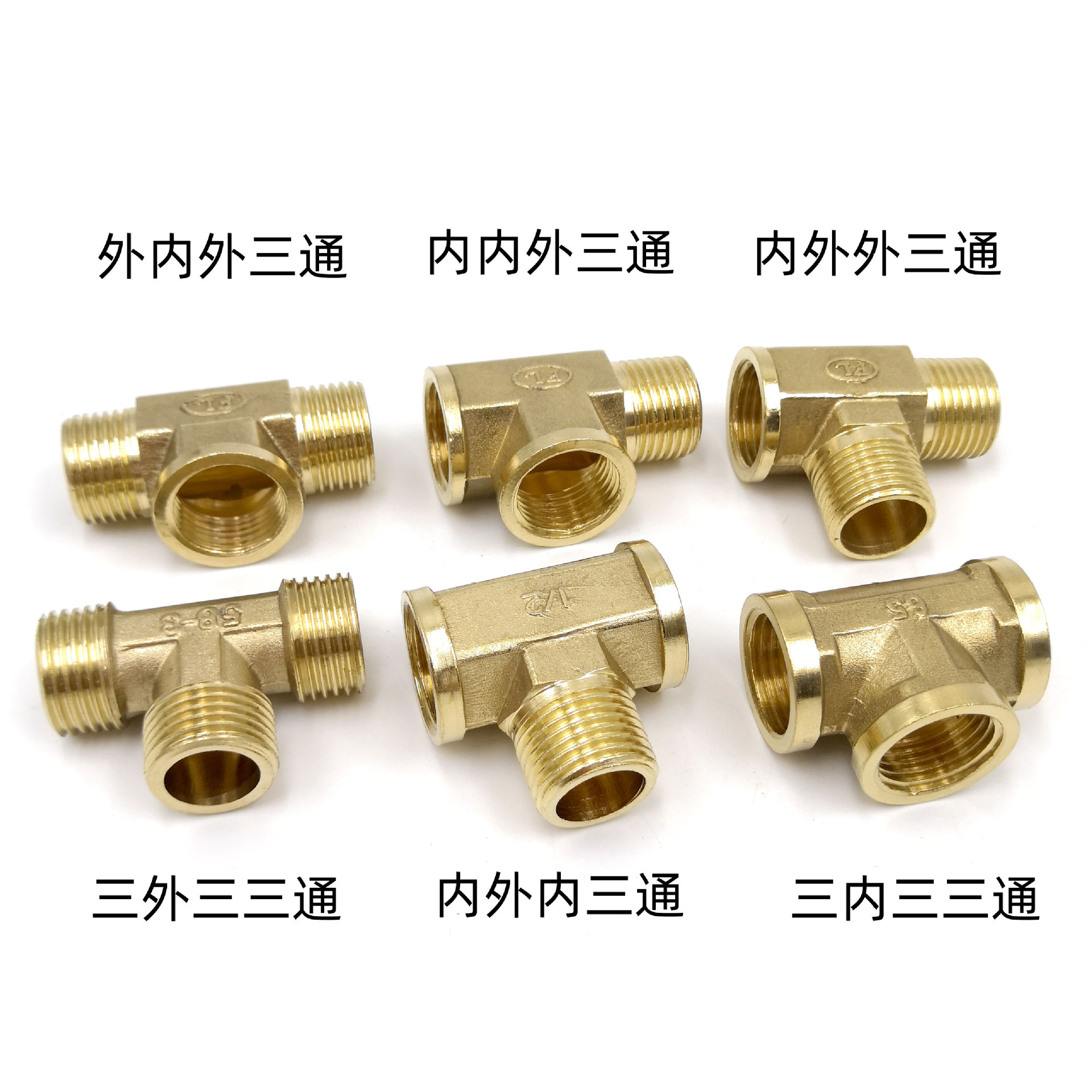 Thickened brass pipe fittings inside and outside silk thread 4 minutes 6 minutes all-copper positive tee joint tap water pipe plumbing accessories