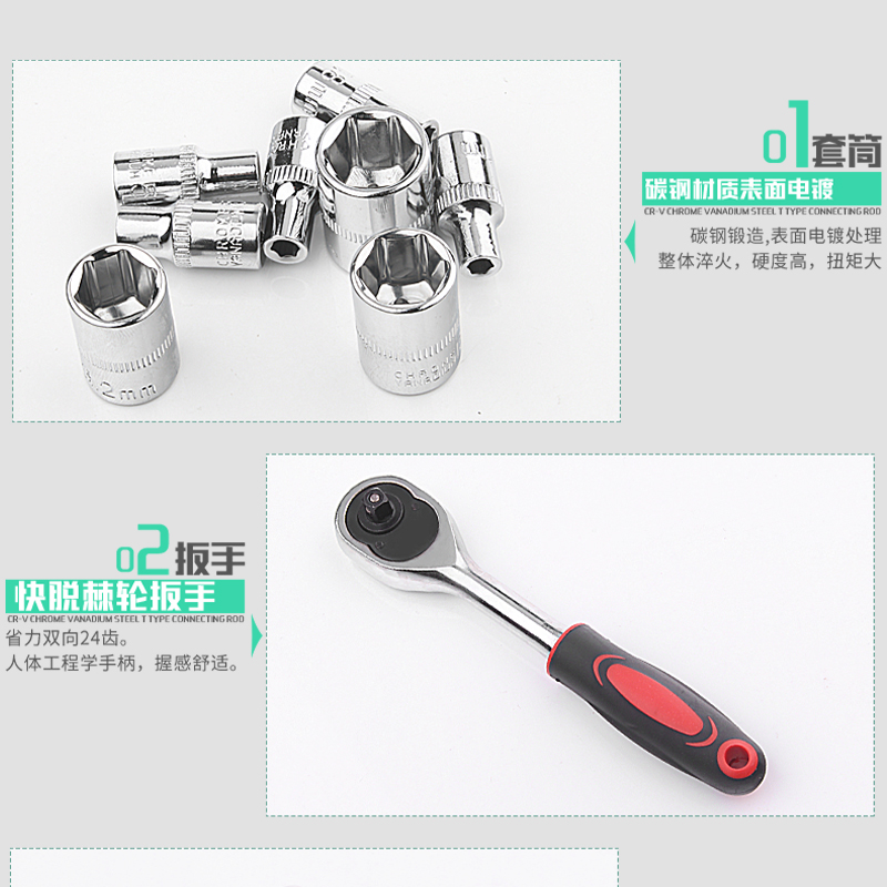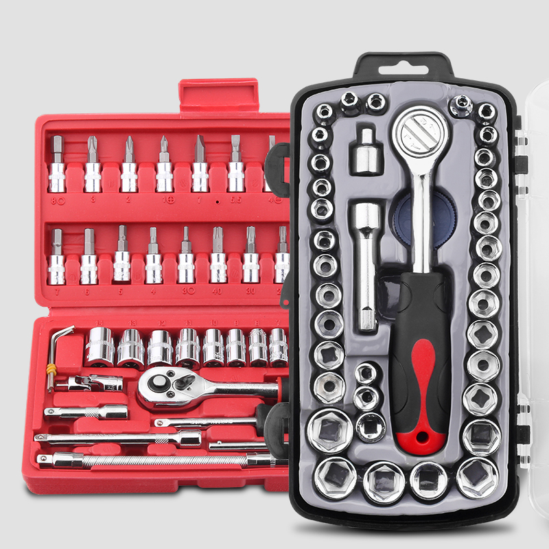 Sleeve set 46 pieces of automotive repair tool set for fast - trackwheel wrench set car repair hardware tool