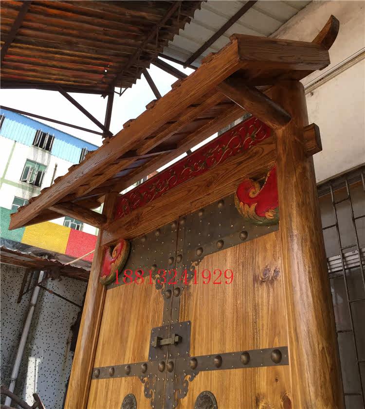 Rural wall double open door Chinese antique solid wood gate old elm tea building villa entry door door