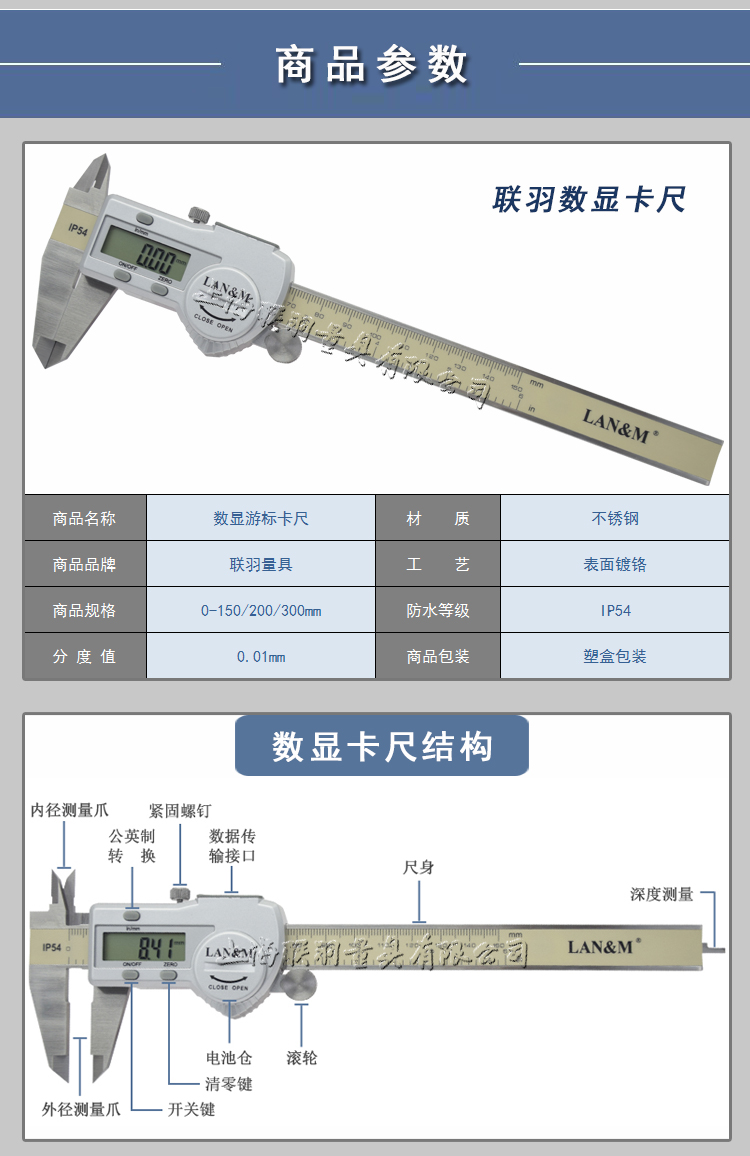 Shanghai Lianyu brand digital caliper IP54 waterproof Bluetooth digital display vernier caliper 0-150 200 300