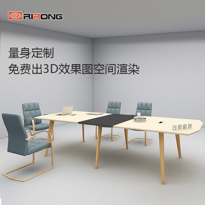 Rirong Office Furniture Nordic Modern Simple Desk Long Table Conference Table Negotiation Table Solid Wood Conference Table JO