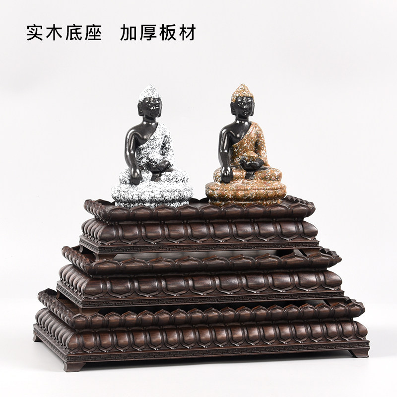 Redwood Lotus Base Solid Wooden Sculpture Buddhist Pot Wooden Craft Decoration Stone Carving and Gauging