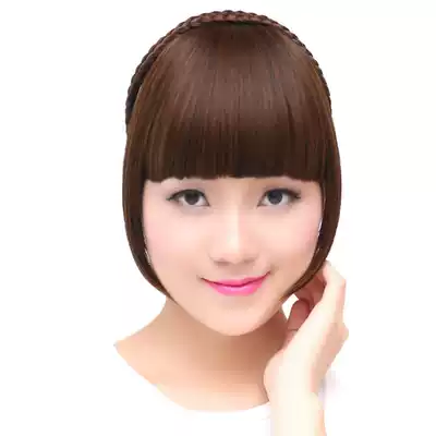 Fake Liuhai cover white hair with sideburns Qi Liuhai fashion female realistic double braided hair band repair face wig Liuhai piece