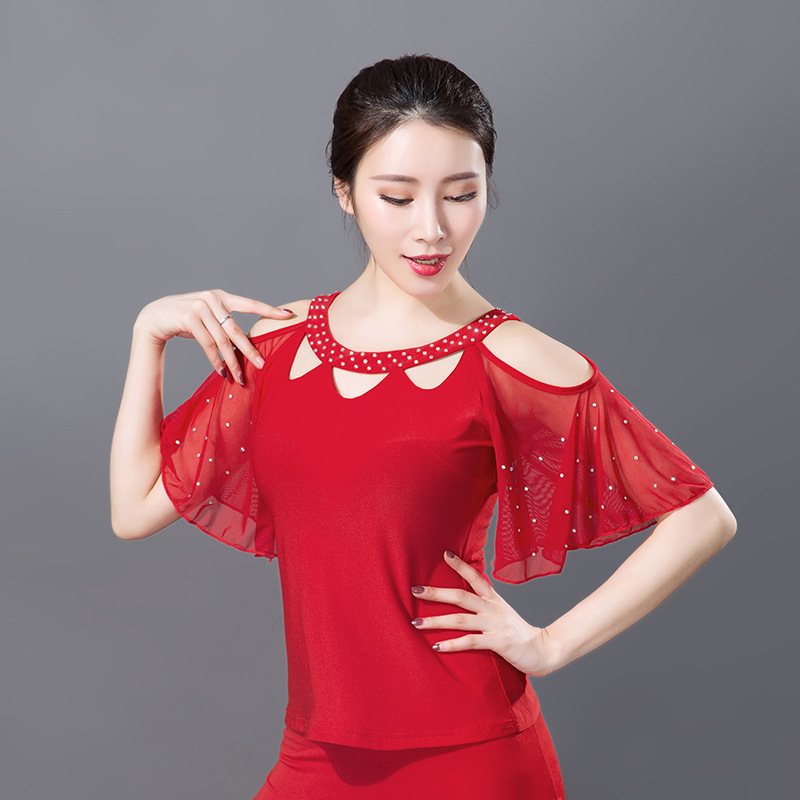 Latin dance women's blouses dance performance practice Costume Women Adults New Short Sleeves National Mark Dance Piazza Dancing Blouses