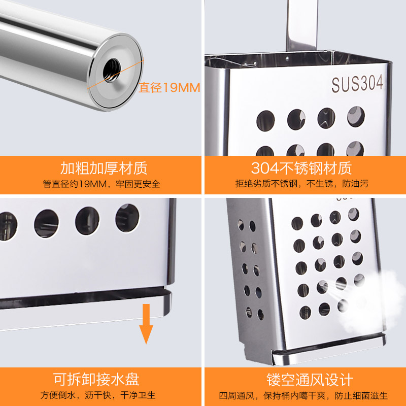304 stainless steel chopstick cage tool holder integrated multifunctional household perforated wall-mounted chopstick cylinder drain containing rack