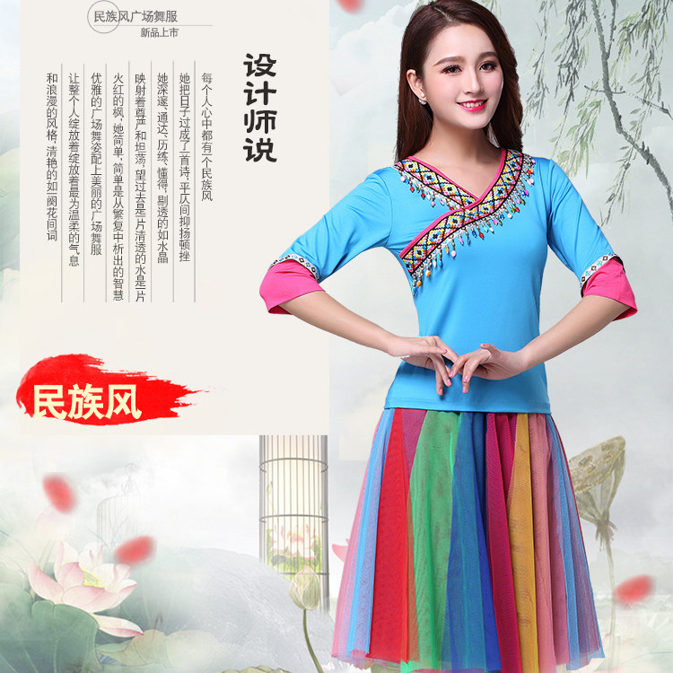 Spring New Square Dance Suit Women's Milk Silk Webbing Florian Lace Imitation Stone Pendant Dance Suit Performance Practice Clothing