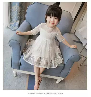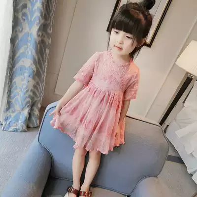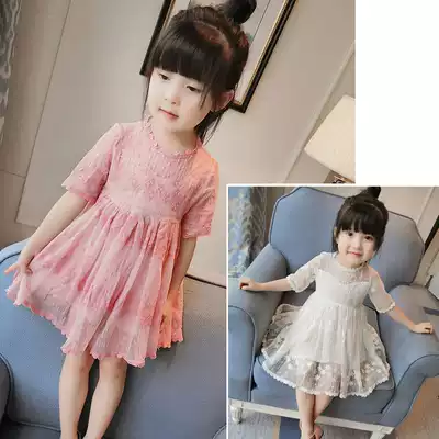 Girls' Dress 2021 Summer New Children's Skirt Women's Baby Short Sleeve Lace Princess Dress Children's Sdress 5075